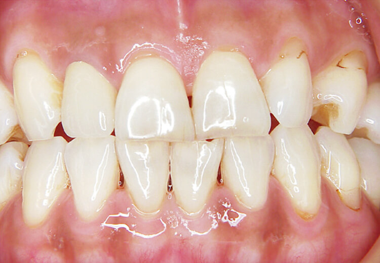 このように高度に進行した歯周病では軟組織の減少は目をつぶらなければなりませんが、審美的には不満を残す結果となることが多いです。