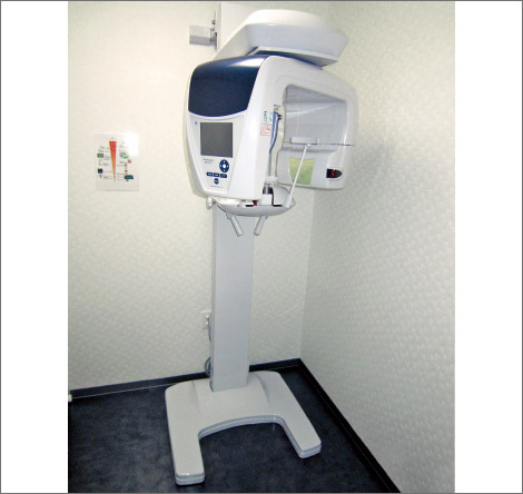 図1 ベラビューエポックス3D。パノラマ撮影もかねた複合型CT撮影機。3Dへの画像処理能力が早く術中確認もスピーディにできる。- 症例1