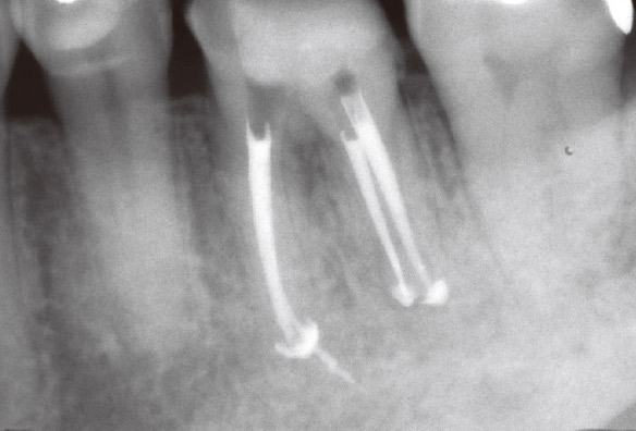 図1g 根管充填直後デンタルX線写真。