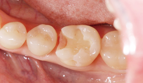 図1 6の不適合インレーをコンポジットレジンにて修復することとした。