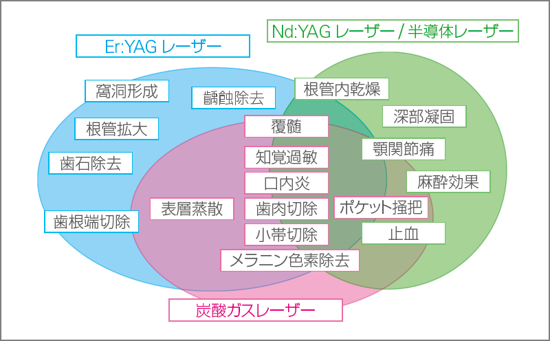 図3 各種歯科用レーザーの適応症例(文献3より)