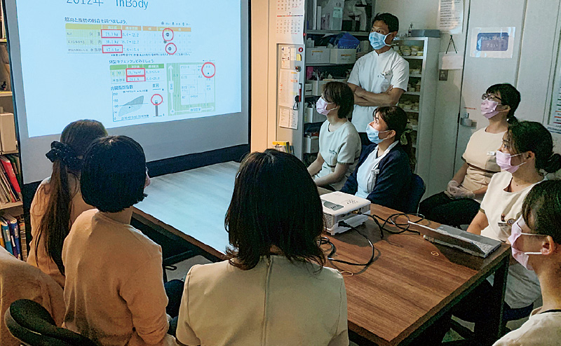 さらに、2013年に体組成計も導入しました。体組成計は、服を着たままの簡単な測定で、体重や体脂肪、筋肉量、脂肪量など、体の情報を客観的な数値で明らかにすることができるもの。データを“見える化”すれば、健康管理への意識も自然と高まり、それをきっかけに生活習慣を見直そうとする患者さんも増えてきます。なりたい自分が顕在化すれば定期的な測定が楽しみになり、結果として受診率も向上します。