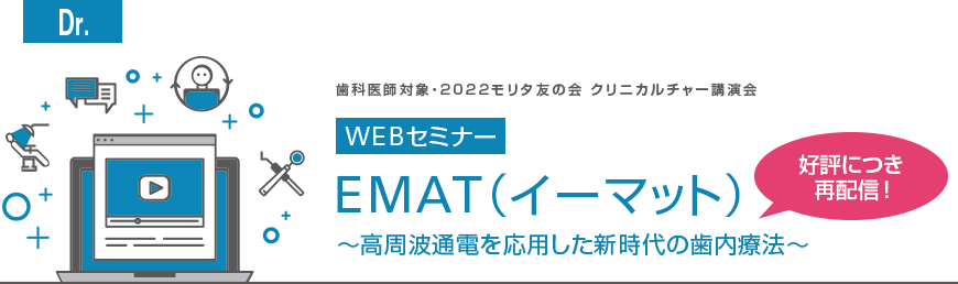 ![[Dr] 歯科医師対象・2022モリタ友の会 クリニカルチャー講演会 WEBセミナー EMAT(イーマット) ~高周波通電を応用した新時代の歯内療法~](img/mainvisual_pic_title01.png?d=220921)